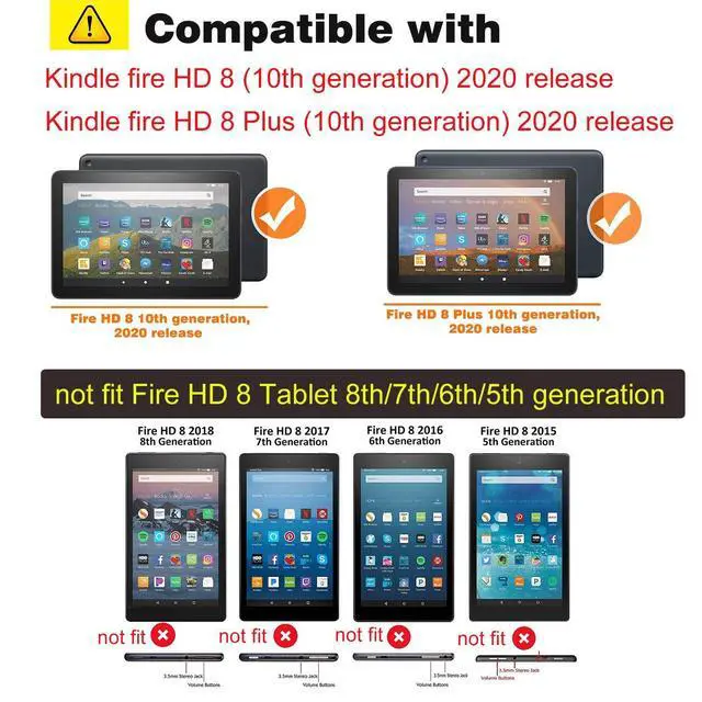 Compatible Models: for Kindle Fire HD 8 (12th Generation, 2022 Release), 8.0 inch; for Kindle Fire HD 8 Plus (12th Generation, 2022 Release), 8.0 inch; for Kindle Fire HD 8 (10th Generation, 2020 Release), 8.0 inch; for Kindle Fire HD 8 Plus Tablet (10th Generation, 2020 Release), 8.0 inch; NOT fit other tablet models.