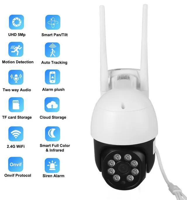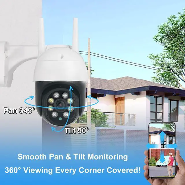 INTRUDER AND ENHANCED ANTENNA: Home security cameras will send you alert notifications when an intruder is detected. At the same time, strobe lights, integrated spotlights and built in alarms will be activated to warn suspicious strangers away. Outdoor security camera equipped with highgain 4dbi antenna and 2.4G, good wall penetration, strong interference ability, can receive your data in a wider range ^^
