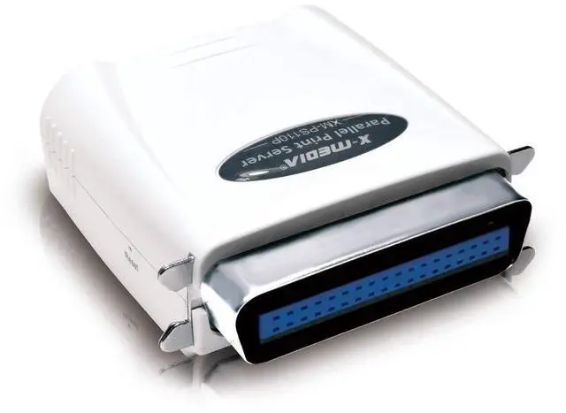 The X-MEDIA XM-PS110P print server allows you to take the computer out of the loop while setting up a printing network. All that is needed is to connect the XM-PS110P to a printer via the parallel port, connect the print server to your LAN, and you will be able to access your printer from any computer on the LAN.