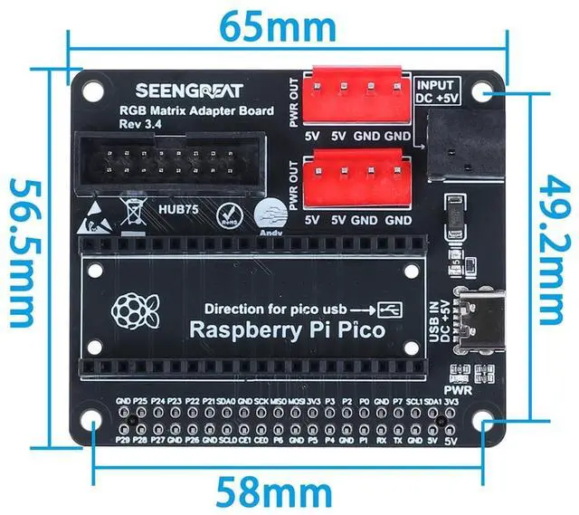 One HUB75 interface: It can be directly connected to the RGB LED matrix panel with HUB75 interface.