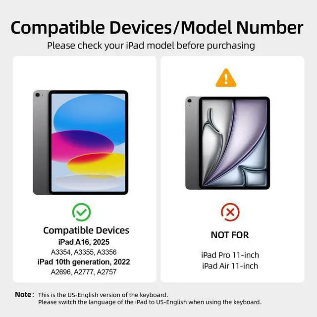 Versatile CompatibilityDesigned for iPad A16, 2025 11th generation (A3354, A3355, A3356) and iPad 10th generation 2022 (A2696, A2777, A2757), transforming your iPad into a laptop anytime, anywhere. ^^ Effortless Multi-Touch Trackpad ControlTake control with easeswipe, zoom, and switch between windows effortlessly using the highly responsive multi-touch trackpad. Designed for precision, it makes multitasking smoother than ever and boosts your productivity instantly ^^ Time-Saving Shortcut Keys for Effortless ProductivityStreamline your daily tasks with intuitive shortcut keys for volume control, screen brightness, and more. Perform your tasks with a single press, making your work process faster and more efficient, allowing you to work smarter, not harder ^^ Secure Magnetic Attachment for Stability and FlexibilityEnjoy maximum stability with a strong magnetic design that attaches your keyboard in seconds.