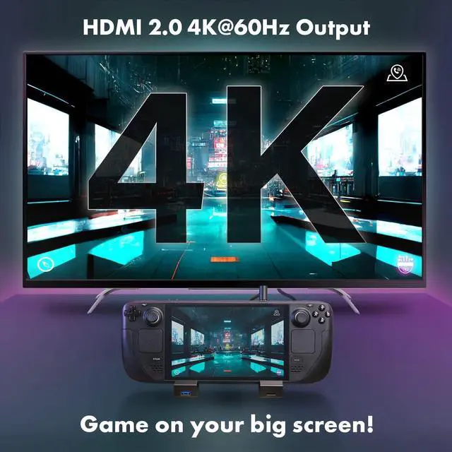 IMPROVED GAMING EXPERIENCE: Get sharper and smoother visuals on an external 4K monitor with the Steam Deck Dock's 4K@60Hz HDMI 2.0 output. Enjoy seamless and immersive gaming with fast charging, Ethernet connectivity, and multiple USB ports.
