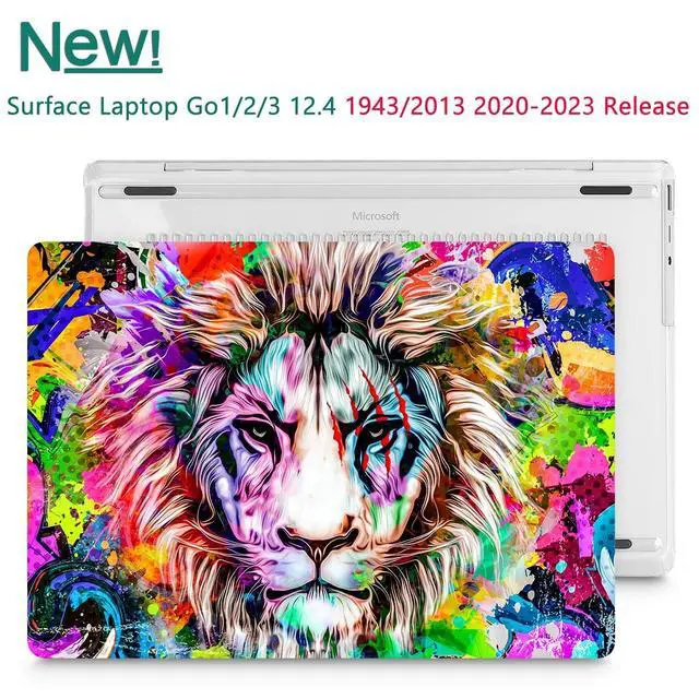 Tuiklol Case for 12.4 Inch Microsoft Surface Laptop Go 3/2 / 1 2023-2020 Releases, Plastic Hard Shell Case with Screen Protector and Keyborad Cover +Dust Plugs Model 2013/1943,Lion