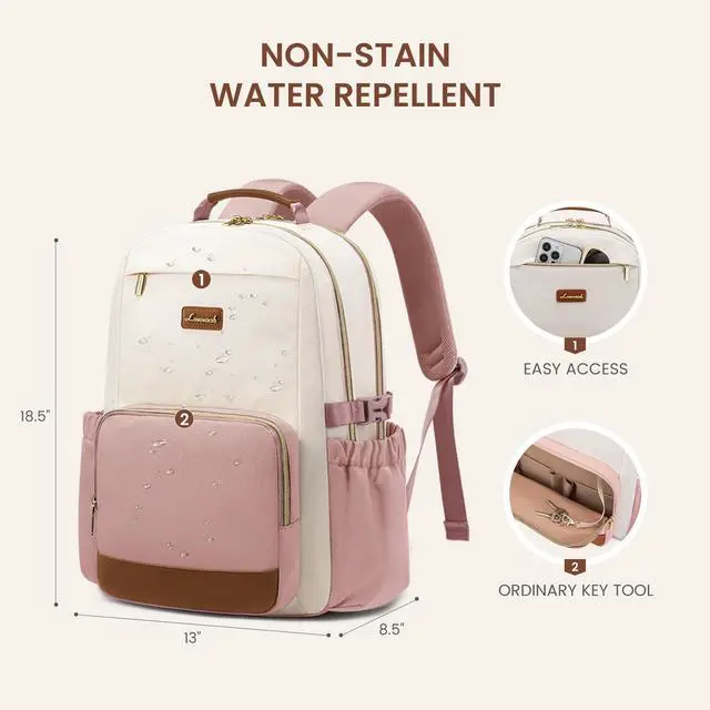 Women: Smooth double LOVEVOOK no-slip metal zippers. NON-STAIN, water-resistant and durable polyester fabric. Cute and stylish color combination. FASHIONABLE AND FUNCTIONAL. Total of 4 compartments and 14 pockets for your computer, A4 folder, bottles, umbrellas, clothes, work supplies, college supplies and travel essentials.