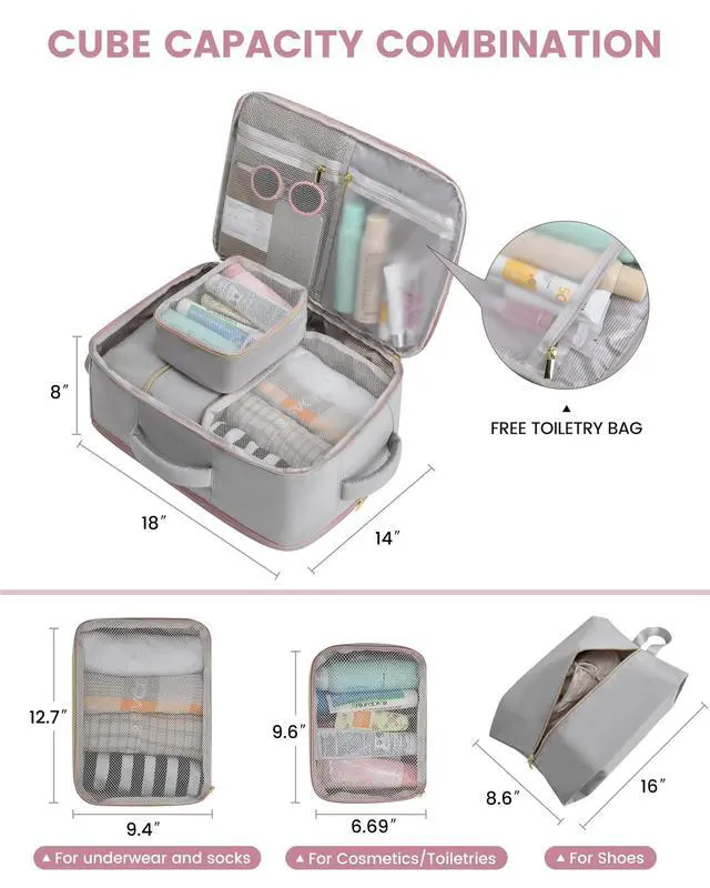 Made of high-density waterproof material, it's perfect for your damp clothes or toiletries, ensuring everything else stays dry. ^^ Fly with Ease Sized right at 18*14*8 inches, it's not just a favorite for major airlines like American Airlines, Delta, and JetBlue; it's also a breeze at security checks. Slide it under your seat or pop it in the overhead bineither way, it's a snug fit. ^^ Tough Build, Easy on Your BackThose premium zippers? They're designed to withstand the rough and tumble of travels. Reinforced stitching ensures longevity.