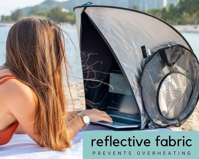 WORK FROM ANYWHERE COMFORTABLY: Lap Shade is the perfect product or gift idea for anyone who likes to work in their backyard, on a patio, at the park, at the beach, or anywhere in public. It provides highly effective sun glare reduction and heat reduction compared to regular laptop privacy screens. This portable laptop computer sun shield reduces eye strain and enables a better work experience outside. Lap Shade allows you to spend more quality time outdoors without sacrificing comfort. ^^ HIGH QUALITY, WATERPROOF