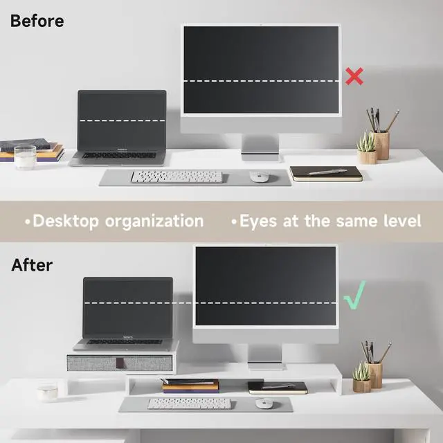 Monitor Stand Riser for 2-3 MonitorsOur computer stand is longer than others and very practical. It can be a monitor/computer stand, printer stand, Laptop Stand. It will be a good helper in your life and office. ^^ Ergonomic Design Stand for Desk Adjustable Direction,