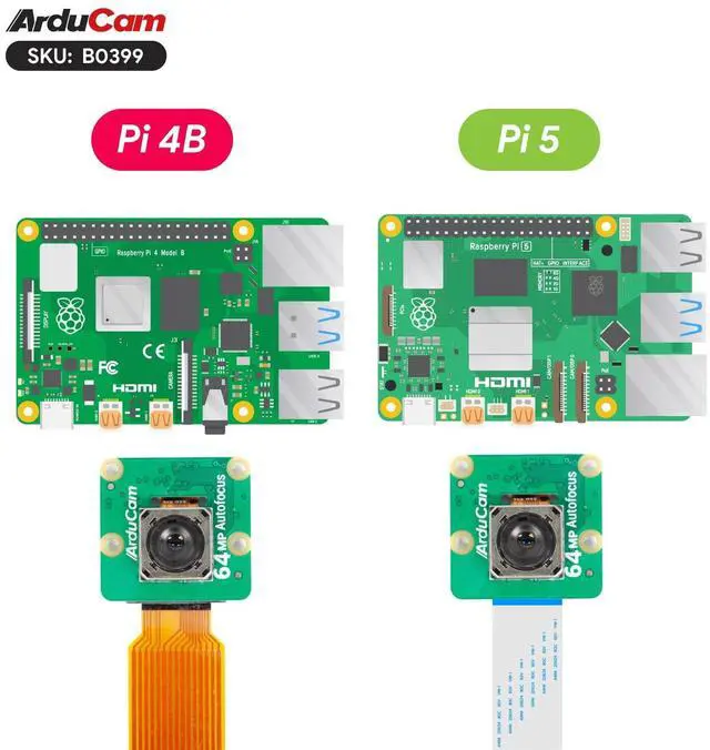 64MP Ultra HD Arducam for Raspberry Pi CameraWith the 64MP ultra-high resolution camera, your Raspberry Pi can capture still images with amazing resolution (9152 x 6944) just like a flagship phone. ^^ All Raspberry Pi CompatibleSame size as Raspberry Pi Camera Module 3/V2/V1, MIPI CSI-2 interface, compatible with all Raspberry Pi motherboards with libcamera app (Bullseye Only). ^^ Autofocus and Manual FocusUp to 10x digital zoom with built-in autofocus motor for fast and infinite focus no matter where you place the camera. Manual focus can also be controlled through software. ^^ Easily accessibleProvides a pre-compiled program (not open source), even for newbies who use Raspberry Pi for the first time, you can easily access the camera.