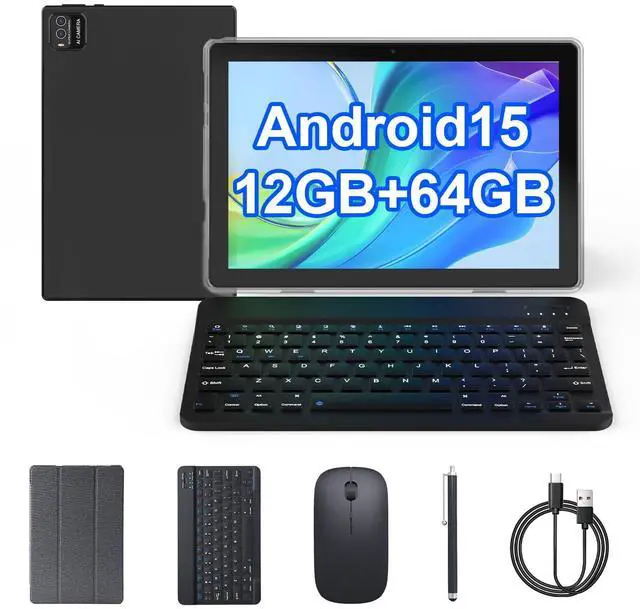 Google Certified Android 15 Tablet This tablet passed the GMS. with lastest android 15 system, not the go edition. compatible more apps than android 14. you can download apps like Facebook, Twitter, Instagram, and more. Enhance your experience and allow you to enjoy reading, watching, Learning surfing internet and more. It is a really good companion for your leisure and entertainment. ^^ Performance Tablet with Keyboard This 2 in 1 tablets with 12GB RAM (4GB fixed memory+ 8GB virtual memory) 64GB ROM (1TB expandable). large storage space for your daily entertainment and work needs.