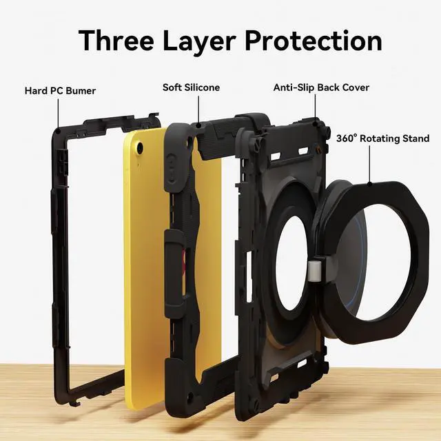 Three-layer Protective Structure: The three-layer structure of this ipad 10th generation case provides comprehensive protection for your device. The outer layer is made of silicone, offering a soft, non-slip grip that not only enhances comfort during use but also helps prevent accidental drops. Beneath the silicone layer, the hard plastic back shell adds a robust defense against impacts and scratches, also features a shock-absorbing bumper that encircles the edges of the tablet, these three layers work in harmony to shield your tablet from damage while maintaining a sleek and functional design ^^