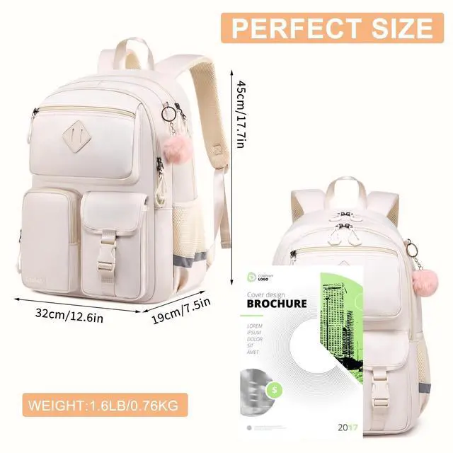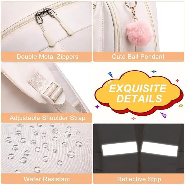 ^^ Multi Pocket: Backpack for school includes 1 main pocket, 2 small inner pockets (for storing small items), as well as a protective compartment for storing files or laptops, 4 external front pockets, 1 hidden zippered back pocket, and 2 side pockets for placing water bottles. This cute middle school girls' backpack features a multi compartment design and comes with a plush ball pendant as a gift, adding practicality and fashion to it. ^^ Waterproof Material &