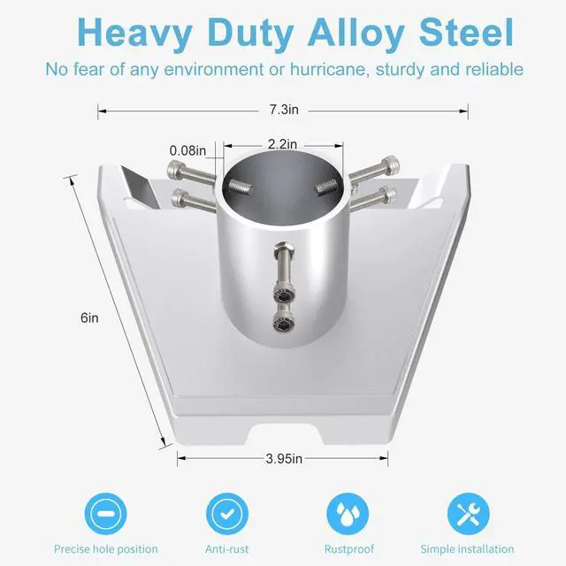 Two Verisons: Adjustable Pipe Adapter Version and Plug-in Pipe Adapter Version Starlink Mount, Adjustable Pipe adapter Version Adapts to different diameters of Pole by adjusting the screw. Plug-in Pipe Adapter Version is an exclusive version for Starlink Gen2 Migkin Rv mount/Migkin Pivot mount/Migkin wall mount, Simply insert the link to turn the Migkin Starlink generation2 mount into the Migkin starlink generation3 mount. ^^ Made of alloy steel, out starlink mount can withstand any harsh weather and remains indestructible even in hurricanes, Surface electroplating treatment to prevent rust and can be used in coastal marine environments. ^^ Heavy Duty Design, Migkin starlink gen 3 mount is made of 2mm thick alloy steel, Overall weighs 1.4 pounds, enough to withstand several tons of weight and easily carry starlink Gen3 V4 or V3 antennas Dish. (Starlink officially calls it the V4 antenna And the media calls it the V3 antenna) ^^ Adjustable Outer Surround Version starlink pole mount Supports poles with a maximum outer diameter of 2.2 inches (56MM), with a wide range of applications, suitable for most flagpoles and J-shaped antenna Pipe Mount on the market.