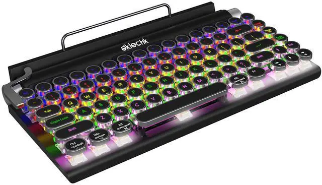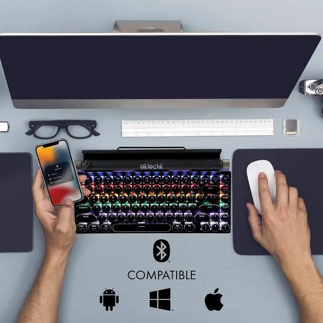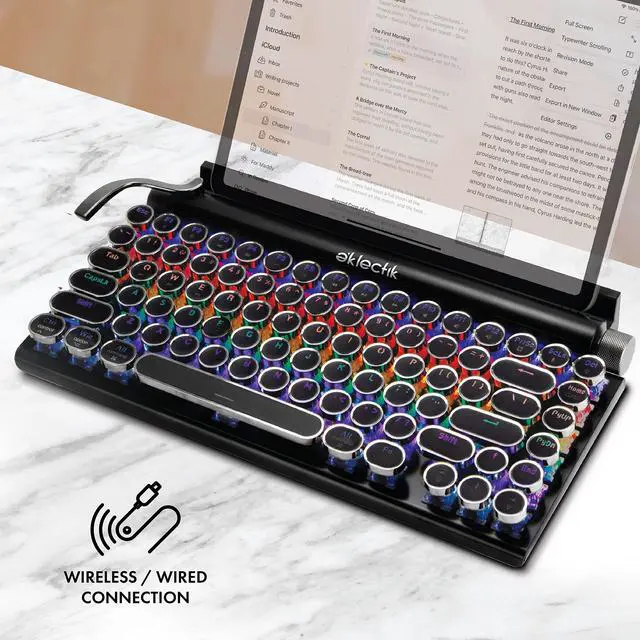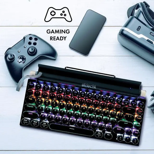 RETRO TYPEWRITER-STYLE MECHANICAL KEYBOARD: Designed with round vintage-style keycaps, this mechanical keyboard delivers a classic typewriter look combined with modern functionality for typing, work, or everyday computer use. ^^ WIRELESS BLUETOOTH & USB-C WIRED CONNECTION: Use the keyboard wirelessly via Bluetooth or connect with USB-C for wired operation. Compatible with PC, laptop, tablet, and other supported devices for flexible setup options. ^^ 83-KEY