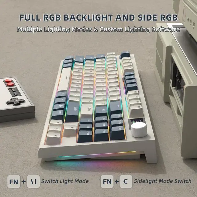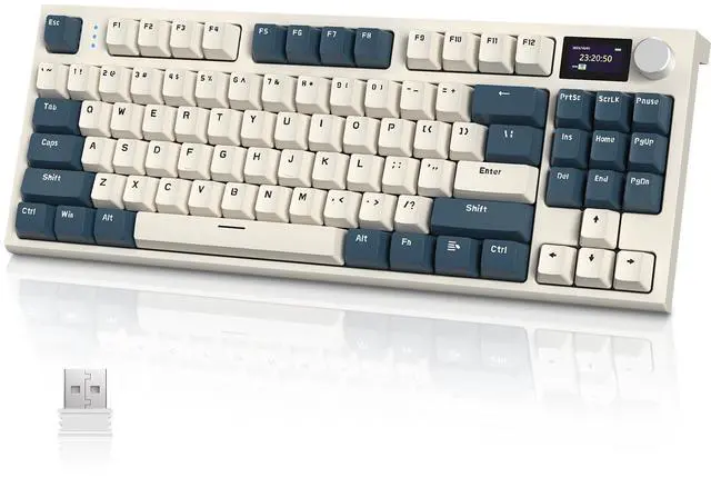 The cloud-driven system ensures automatic updates and seamless integration, so you can personalize every aspect of your typing and gaming experience. Whether you're a casual user or a competitive gamer, the K86's software offers the flexibility to create your ideal setup. ^^ Multi-Device Connectivity & Triple Mode Support The K86 features versatile connectivity with USB Type-C wired mode, Bluetooth 5.0, and stable 2.4GH z wireless support. Effortlessly switch between up to 3 devices with a single twist of the CNC multimedia knob. Compatible with Windows, MACOS, and Bluetooth-enabled cell phones or computers, the K86 adapts to your workflow and gaming setup.