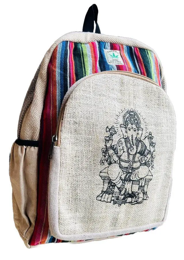 DescriptionHimalayan Craft Beautifully designed Medium Hemp Bag backpack is made from natural hemp fiber and natural heavy-duty cotton that are well known for their strength and durability. Inner lining has soft cotton material to make this bag sturdy and extra durable. This multi-color stylish backpack has pockets of different sizes, useful for all of your different sized goods. It has enough space to carry all your personal belongings including Textbooks, Laptop and other necessities. This backpack gets softer to touch as you use it more, yet it retains its durability. We use pure Hemp and Cotton.