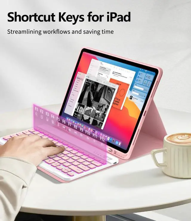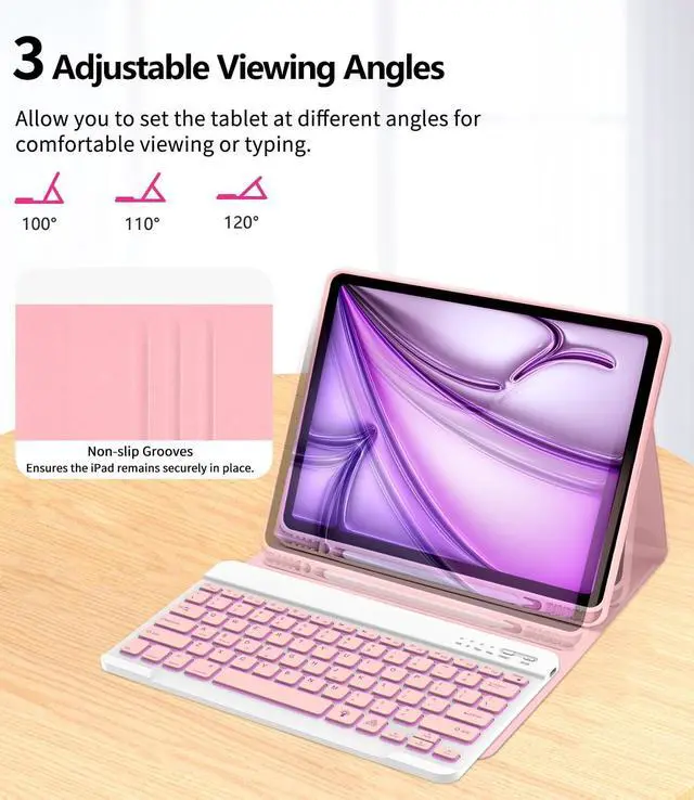 Versatile Viewing Angles: Designed with a flip magnet separation, this ipad Air 13 inch keyboard case offers three adjustable stand angles, providing optimal comfort for typing, reading, or gaming. Easily switch between positions to find the perfect angle for any activity, whether at work, school, or home ^^ 360