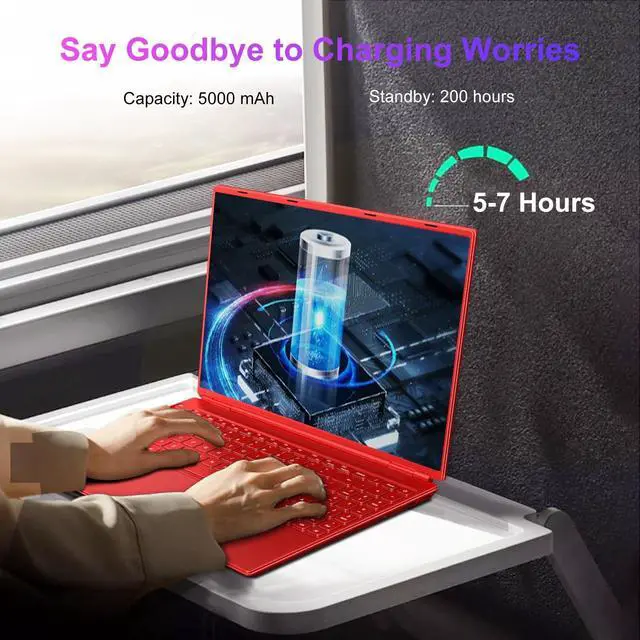 It's a laptop that combines performance and beauty ^^ Enhanced CoolingLaptop computer Win 11 features an celeron N5095 quad-core processor for smooth performance in multitasking. The built-in cooling fan efficiently dissipates heat, preventing overheating during heavy tasks. Its quiet operation ensures a disturbance-free experience while using demanding applications. With optimized thermal management, the laptop delivers enhanced performance and durability, making it ideal for work and entertainment ^^ Versatile ConnectivityTraditional laptop comes equipped with multiple ports: 3.0 Type-A, 1 headset port, 1 lock, 1 micro-SD slot and 1 screen projection interface, new Type-C interface for transferring charging. Just press the lock button, no one else can easily open your computer, well maintain privacy and security. Dual-band WIFI for smoother internet access ^^ Long Battery Life and PackageThis versatile laptop is ideal for both business and home use. It features an advanced 5000mWh rechargeable battery, offering impressive battery life of 5-7 hours, making it ideal for work or travel. The packaging includes a wireless mouse, a 12V DC charger, and a user manual, ensuring you have everything you need right out of the box