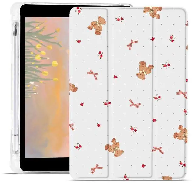 This cute bear case with pencil holder designed for iPad 2021/2020/2019, iPad 9th/7th/8th Generation, 10.2 Inch.