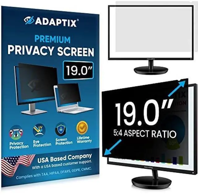 Privacy Filter Dimension - 14 13/16" (376 mm), HEIGHT: 11 7/8" (302 mm) No matter where youre working, dont put your information at risk! Protect your privacy with an Adaptix privacy filter for monitor at work and at home. With touchscreen compatibility for every size, you can safeguard any computer including HP, Dell, and more. Please verify your computer screen's width and height measurements before ordering as it's not recommended to only measure your screen's diagonal size. ^^ Certified Quality - Ensure private browsing with the flexible security screen for desktop monitors that meets the strictest standards. This ITAR/GDPR-compliant desktop monitor screen protector features multiple layers of thick film to black out your screen at angles beyond 30 degrees. Its also easy to install and is anti-glare and scratch-resistant, plus it wont damage your computer or affect your touchscreen capability! ^^ Protect Your Information - Protect your privacy AND your eyes with the desktop security screen that reduces blue light exposure to minimize UV radiation up to 96 percent! Whether youre a professional protecting sensitive information, a student safeguarding notes, or a digital nomad securing confidential content, make sure your private material and your eyes stay safe.