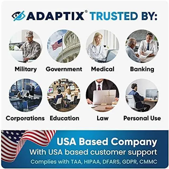 [Note: Regardless of the distance, privacy screens do not block visibility directly behind you. ] ^^ Dual Finish + Bonus Gift - Pick the finish you want with Adaptixs reversible information security screen, a non-reflective matte finish or a glossy luster! Options include, 3M adhesive attachment strips to mount the filter. Plus, your ironclad desktop screen protector comes with a FREE convenient cleaning cloth to wipe away pesky prints and smudges. ^^ Satisfaction Guarantee - Based in the U. S., Adaptix makes sure you get the very best quality from customer service to our private screen protectors. Well even help you choose the right filter size! Plus, purchase confidently knowing your computer screen privacy filter includes a 1-year warranty and a 100 percent satisfaction guarantee.