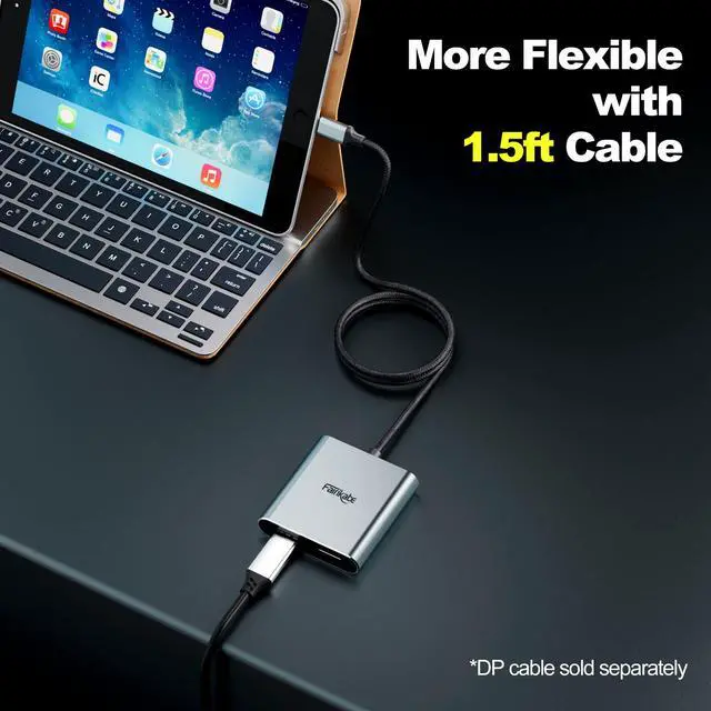 ^^ Widely Compatibility: This USB C to DisplayPort adapter compatible with USB-C (Thunderbolt 3) devices such as Dell, Lenovo, Acer, HP & More (Make sure USB-C port supports video output). 1.5 feet length cable bring more flexibility for you.
