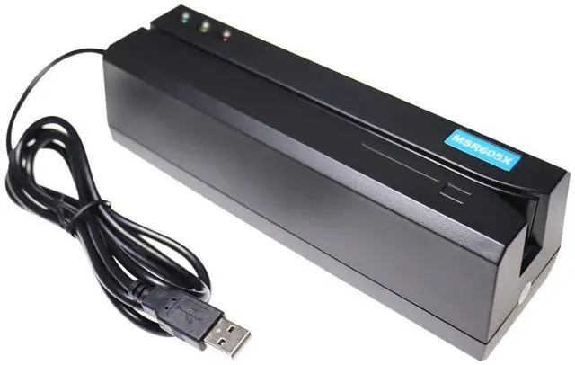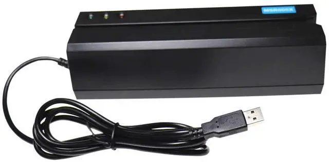 MSR605X Card Reader with USB InterfaceAll 3 tracks (track 1, 2, 3) ISO format. Provide software for Windows and Mac computers. Communication and power via USB cable. No external power adapter required. Comes with 20 blank cards and a cleaning card.