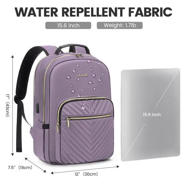 Upgraded Laptop Backpack Women: Classic V-shaped embroidery thread. Upgraded double LOVEVOOK no-slip metal zippers, water resistant Nylon fabric with polyester lining, ensures long lasting usage. Total of 4 compartments and 16 pockets for your computer, A4 folder, bottles, umbrellas, clothes, work supplies, college supplies and travel essentials.