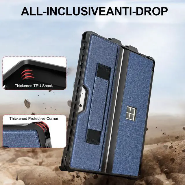 Case for 12.3" Microsoft Surface Pro 7+/7/6/5/4 Protective Rugged Cover Case, with Surface Pen Holder and Hand Strap, Compatible with Surface Pro Type Cover Keyboard (Navy Blue)