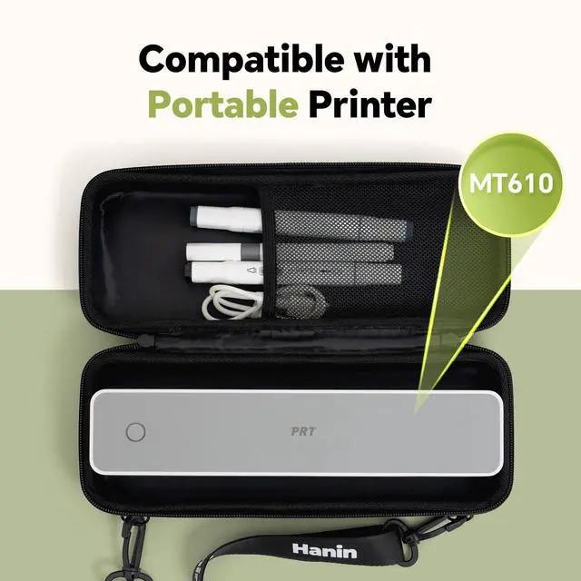 Printer Case ( Case only, No printer, No accessories ) - Lightweight case made of durable and high-quality EVA material, with excellent shock resistance, can protect your beloved printer from bumps and scratches. ^^ Friendly Design - Compact & lightweight MT610/M10 Pro printer storage box with mesh compartments for small accessories such as USB cables and paper rolls to avoid clutter. Comfortable handle with adjustable length, ergonomic design. ^^ Perfect Size for Travel - The interior space is 11" x 3.9" x 2.5", which is perfect for PRT/ iDPRT/ HPRT MT610/MT610 Pro portable printers.