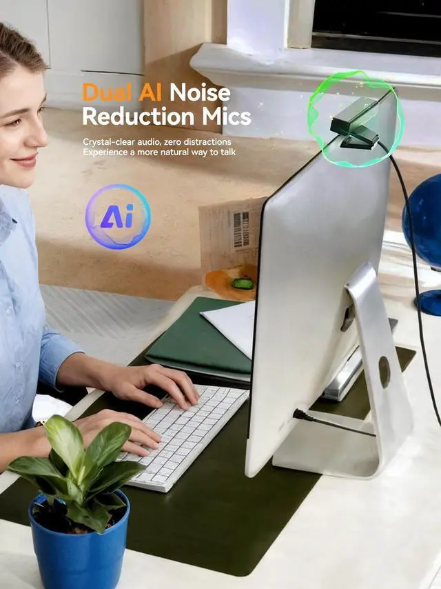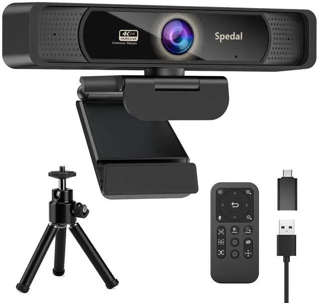 Whether showcasing close-up products or leading a boardroom presentation, you stay perfectly in focus. ^^ Balanced Lighting in Any Environment Master any lighting environment with an industry-leading 90.9 dB Dynamic Range. This hardware-level HDR effectively balances harsh highlights and deep shadows in real-time. Even in low-light home offices or backlit rooms with bright windows, the camera keeps your face clear and balanced, ensuring a professional appearance at any time of day. ^^ Remote Control & Clear Voice PickupTake full control of your framing with the included remote control, allowing you to manage digital zoom, mute, or adjust brightness instantly.