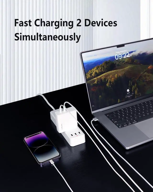 Fast Charge Two Devices: The DERLULU 140W 2-Port USB-C Charger enables you to have your laptop and phone or other electronic devices fast charged simultaneously. This 140W GaN charger could unleash 100W power with Type-C1 and 20W with Type-C2 when it charges for two devices at the same time. You could have your MacBook pro or MacBook Air and your iPhone fast charged simultaneously. ^^ PD 3.1
