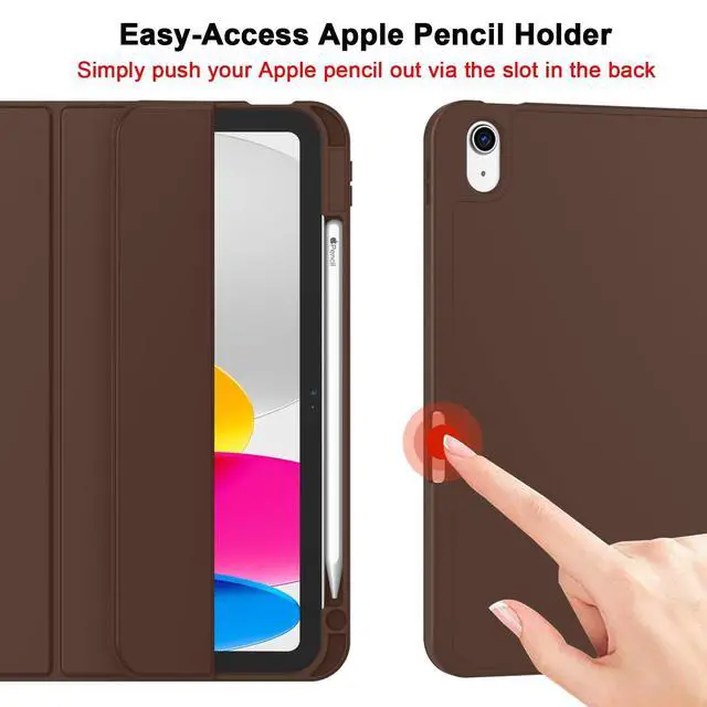 ZryXal iPad (A16) Case/iPad 10th Generation Case [11-Inch 2025/10.9 Inch 2022] with Pencil Holder, Smart Cover with Soft TPU Back [Support Auto Wake/Sleep] (Chocolate)