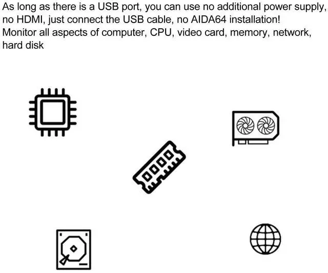 ^^ EASY TO USE: Host extended screen is mainly used for host temperature monitoring, no need to use AIDA64 software, no additional power supply, no High Definition Multimedia Interface cable, just a USB cable to connect the mini auxiliary screen to the computer, and then start our custom software to use, faster and more convenient.