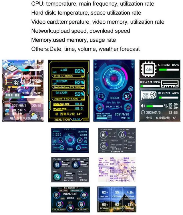 ^^ MULTIFUNCTION: USB mini screen built in multiple themes to choose from, USB interface direct connection, comprehensive monitoring of computer health, shutdown automatic rest screen.