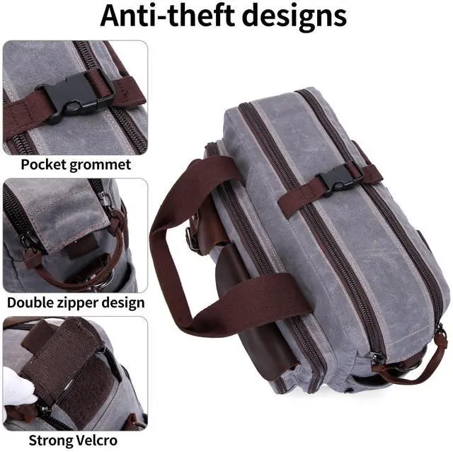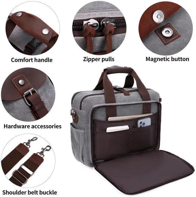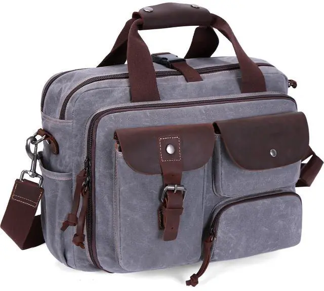[Material]: The laptop briefcase is made of environment-friendly waxes canvas which is durable and study;