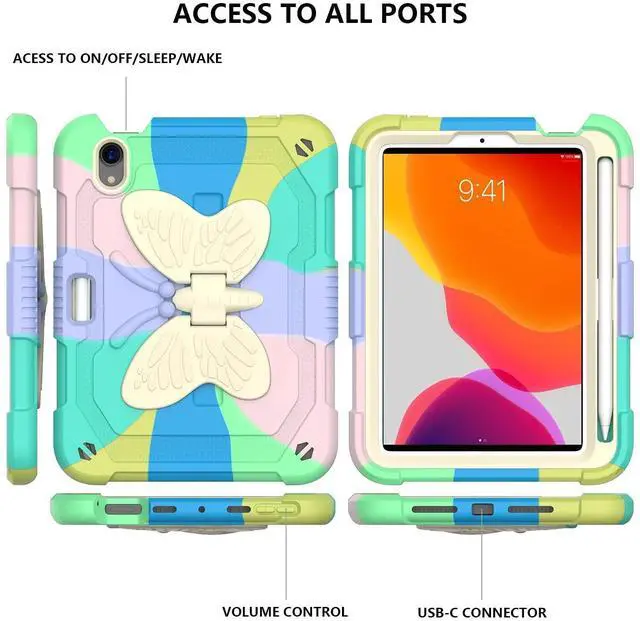 Compatible with iPad Mini 6 2021 8.3 inch. You can find the Model Number on the back of iPad. (The ipad mini case without built-in screen protector. for Apple Pencil is not included) Features -High quality silicone back shell protects from drops, shocks, scratches; Stylish and durable, easy to install and remove. -The ipad mini 6th generation case is built-in Kickstand and Pencil holder. Meet the needs of children to study and watch videos. -Precise cutout design, easy to access all features without removing cases. (buttons, speakers, cameras).