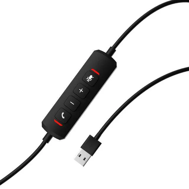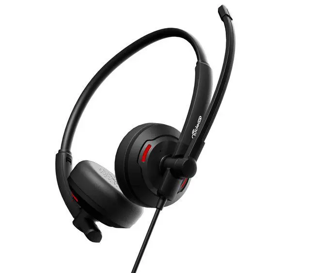A dual ear USB-A headset that cancels up to 90% of noise before transmitting audio to the other end.