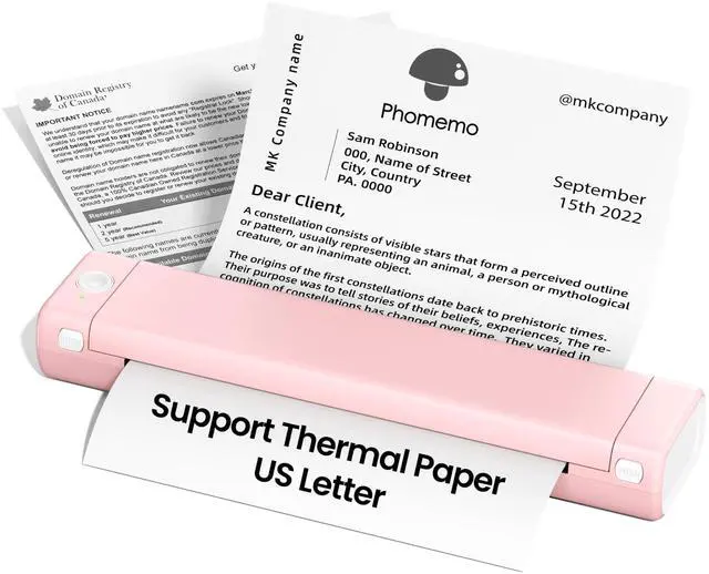 Enjoy Portable and Easy Printing - Phomemo thermal printer weighs only 1.58 lbs. Portable printer is compact enough to fit in a bag for easy portability. The inkless printer easily meets your outdoor and indoor printing needs, ideal to use for on the go, business trip, car, office, home or university. This is a must have for so many professions ^^ Bluetooth & USB Connection - The wireless printer can be connected to your Phone, Tablets via Bluetooth in the Phomemo APP. You can also use our USB cable to connect for laptop printing (PC printing needs to download the driver from: m08f. phomemo. com) ^^ Inkless Printing - Our inkless wireless printer use advanced thermal technology. Say goodbye to expensive inks, toners or ribbons, eliminating clogging and cleaning problems. By simply replacing the thermal paper at a cost as low as $ 0.12 per sheet, print anywhere without the ink mess, Tip: M08F portable printer can only print on thermal paper ^^ Multipurpose - The wireless portable printer support PDF, Word, Excel, TXT, images, web printing. Our mobile printer is great for for daily or emergencies such as contracts, office documents, study materials, inventory lists, travel maps, business inspections, shipping labels, boarding passes, and more ^^ 203DPI Clear Printing - This portable thermal printer has a nice look and a small size, specially designed for portable. More importantly, compared with similar thermal printer 8.5 x 11, it has clear printing and high-definition imaging, making your work more flexible and efficient (Black and white print)