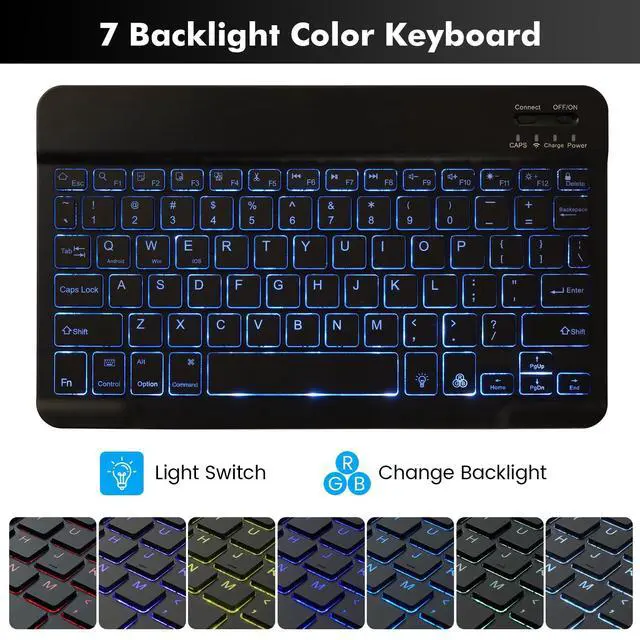 Backlight Wireless Keyboard: The wireless Bluetooth keyboard has 7-color LED backlight with breathing lights and constant light modes. Adopts a scissor-switch mechanism, making you immerse the colorful environment easily even you are in the dark. enables silent typing and efficient work.
