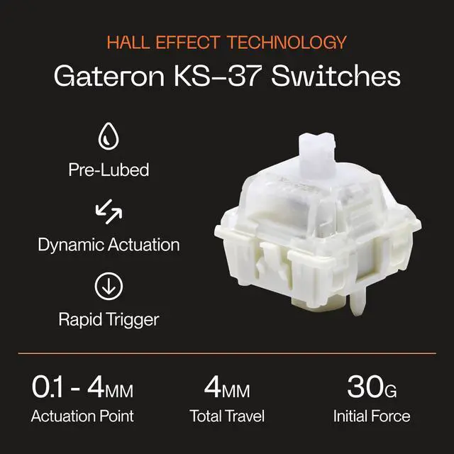 Hall Effect Technology: This keyboard is equipped with pre-lubed Gateron KS-37 magnetic linear switches, enabling Dynamic Actuation and Rapid Trigger, and giving you that extra edge in-game.