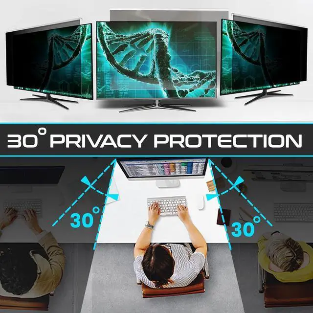 This Privacy Screen Panel is designed to fit 19 Inch (Diagonally Measured) Monitor, Screen Filter size is 10.9" Height x 16.7" Width. Please compare your monitor size to the listing image on the left. ^^ This privacy screen ensures your personal and professional data stays secure, especially in crowded spaces. It uses advanced micro-louver technology to limit side viewingobscuring the screen at angles around 30 degrees and completely blacking it out near 60 degrees. ^^ Designed to reduce eye fatigue and protect your vision, this privacy screen blocks 98% of UV rays and filters out 95% of harmful blue light.