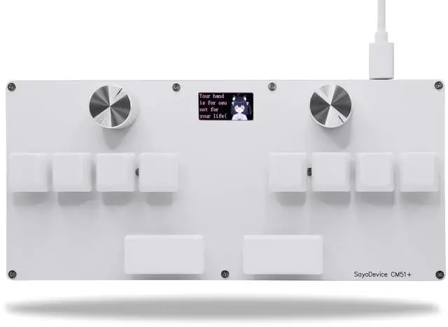 SayoDevice CM51+ KeyboardSuitable for OSU! djmax... Rhythm game Make you better and confidentSwitches10 OUTEMU pink switches, Rapid Trigger Hall magnetic Linear Switches. ScreenWith 0.96 inch IPS color screen, 160*80 Resolution. The screen can be customized, such as writing your own ID and custom picture.