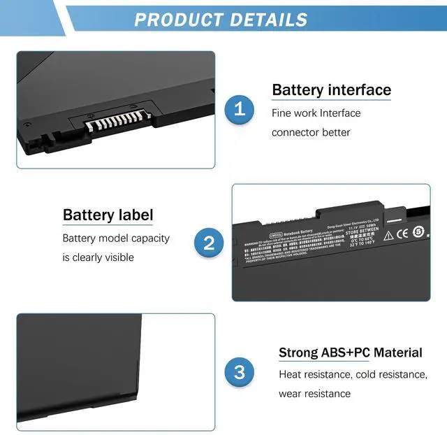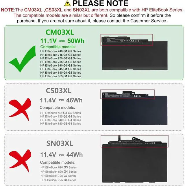 Grade Cells: YUERYE cm03xl battery has the same life as the original battery, even more than the original hp elitebook 840 battery. Up to 1000 recharge cycles over the life of the battery. CM03XL Battery includes built-in circuit protection for steady performance and provides protections against overcharging, over-discharging, and short-circuiting ^^