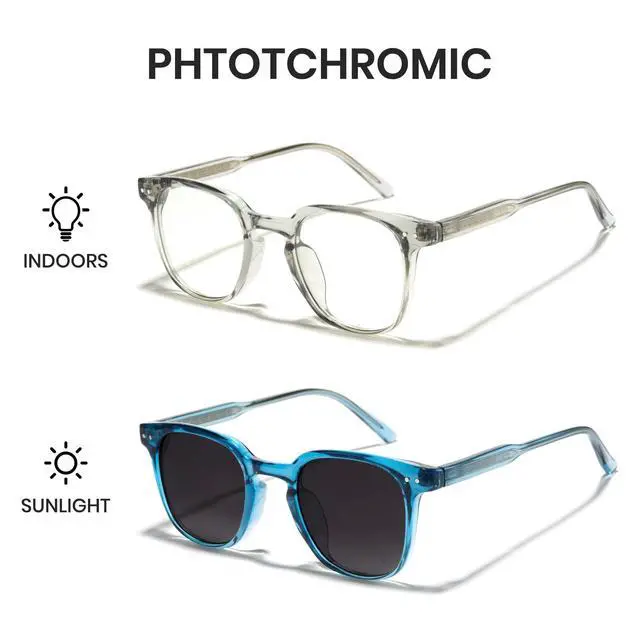 Innovative Photochromic TechnologyBoth lenses and frames adapt to light conditions, transitioning from clear to tinted when exposed to sunlight, and providing a unique and functional aesthetic ^^ 100%
