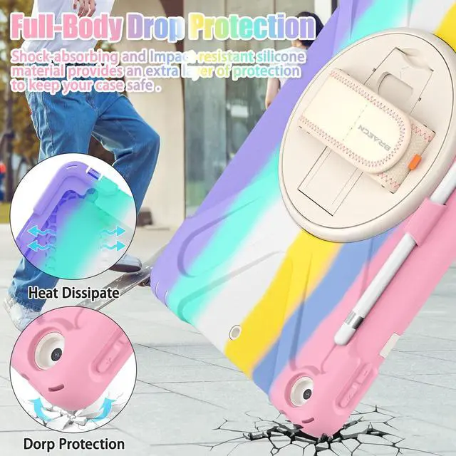 ^^ Military-Grade Protection: The iPad 9th/8th/7th Gen Rugged Case with 4-Layer construction (built-in Screen Protector + hard PC + soft Silicone + anti-collision TPU) for anti-shock, anti-scratch, and anti-dirt defense. Kid-friendly materials Safe for students and children ^^ 360 Rotatable Stand +