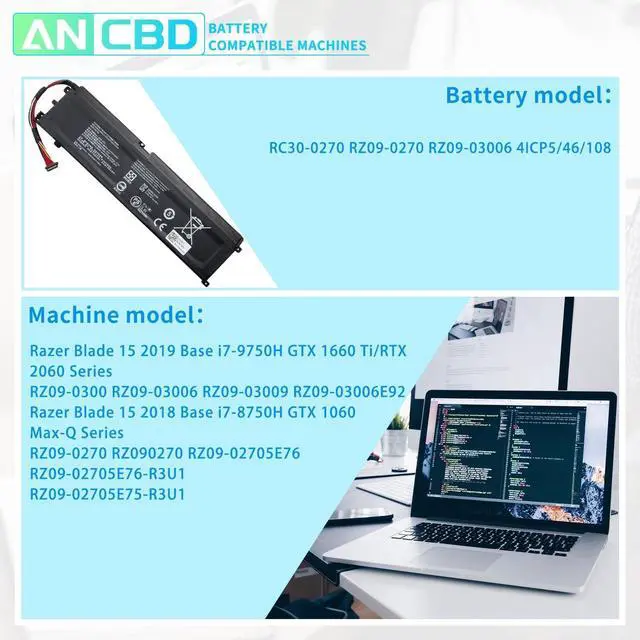Compatible Models: Razer Blade 15 Base 2018 GTX 1660 Ti RZ09-0300 RZ09-03006 RZ09-03009 RZ09-0270 RZ090270 RZ09-02705E76 RZ09-02705E76-R3U1 RZ09-02705E75-R3U1 RZ09-03006E92 Series, Razer Blade 15 2018 Base i7-8750H GTX 1060 Max-Q Series, Razer Blade 15 2019 Base i7-9750H GTX 1660 Ti/RTX 2060 Series, Razer Blade 15 Base 2019 FULL HD 144HZ, Razer Blade 15 2019 Base (i7-9750H/RTX 2070 Max-Q), Razer Blade 15 RZ09-03009 RZ09-03009E97 RZ09-03009E97-R3U1 RZ09-03009E97-R3B1, Razer Blade 15 Base 2019 Series ^^ ANCBD RC30-0270