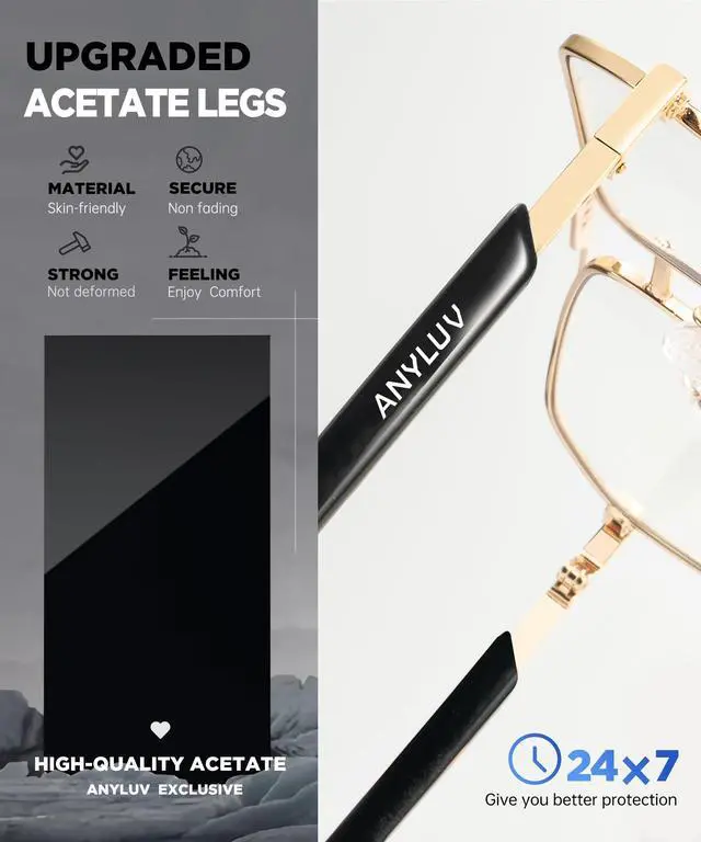 Trendy Blue Light Glasses: Designed with square slim frame and ANYLUV logo decor temple, very exquisite and fashion style. These anti blue light glasses help show a sophisticated look that complement any outfits, whether you're working or casual daily life ^^ Upgraded