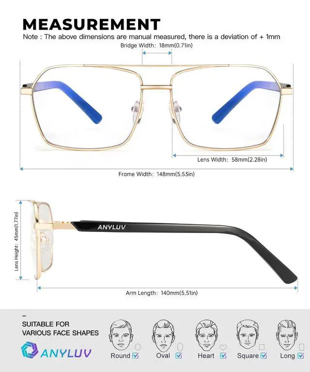 45%: These blue light blocking glasses can filter 45% of high energy harmful blue light from computers and other devices, help release eye fatigue. When you reading books or looking on electronic screens for long time, these ANYLUV blue light glasses for men can help make eyes relaxed, meantime improve sleep quality ^^