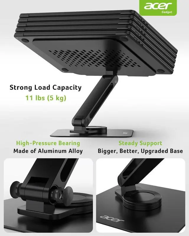 Stable & Durable: Made from aircraft-grade aluminum, this laptop swivel stand holds up to 11 lbs without shaking. Anti-slip pads add extra grip, making it a rock-solid and reliable stand laptop stand for daily use ^^ Active
