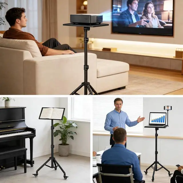 Wheels: This versatile projector tripod features three high-quality, silent casters that swivel 360 for smooth movement. All casters are lockable for enhanced safety and can be removed for stationary use, making this laptop tripod stand adaptable to various settings ^^ Heavy